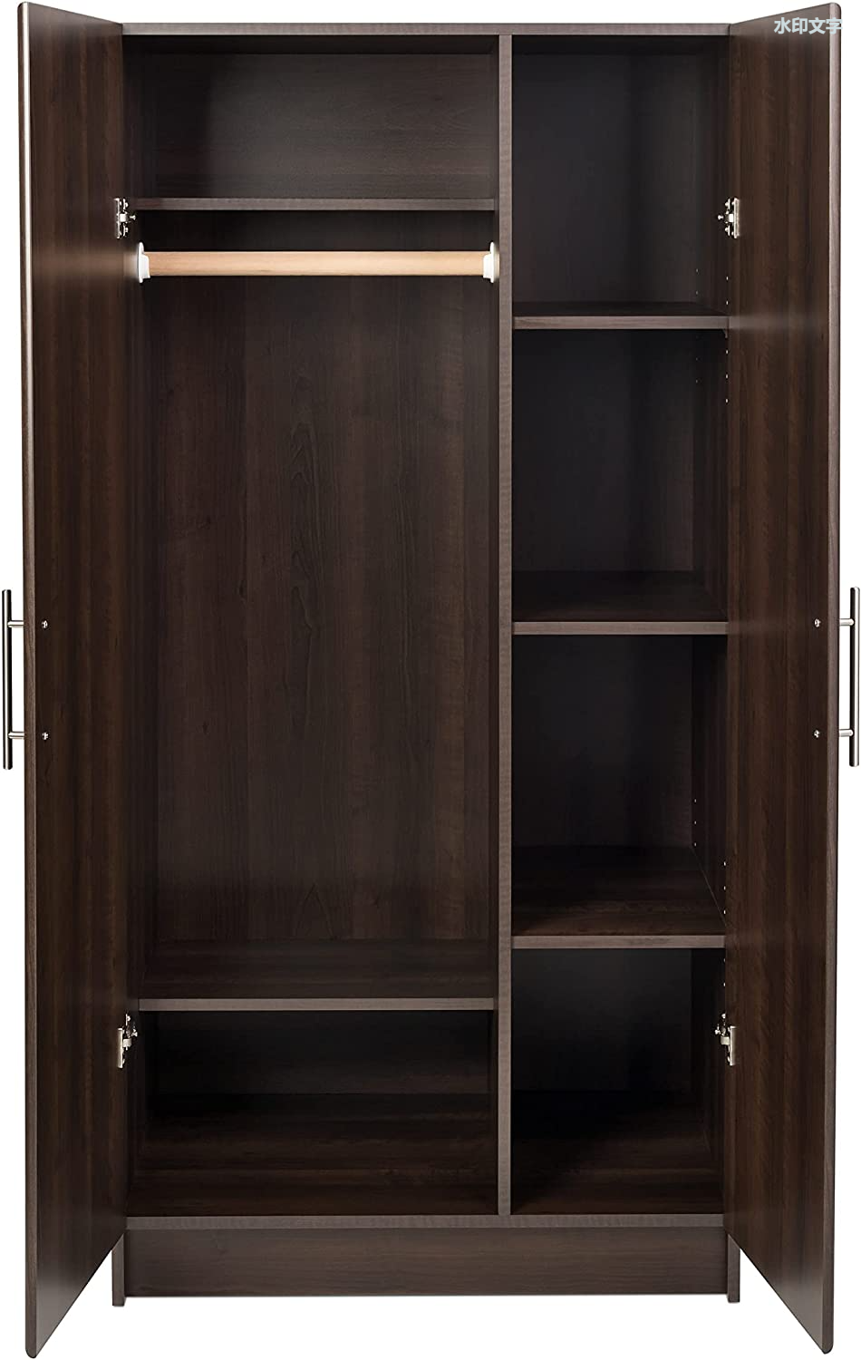 SPACIOUS DESIGN: Features a 21" depth to provide room for multiple hangers along the integrated rail, two fixed top and bottom shelves, and a right-hand shelving compartment to grant spacious clothes storage solution