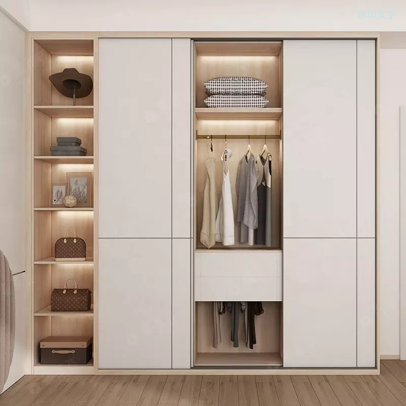 2022 New Modern Customized White Wardrobe Cabinet Latest Design Wooden Storage Sliding Door Wardrobe