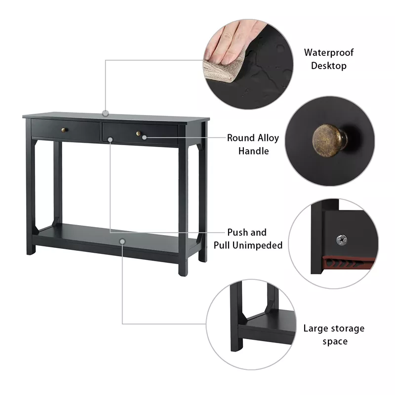 America Hot Sale 3 Days Delivery Fast Shipment Wood Table Console with 2 Drawers Rustic MDFconsole Table for Storage
