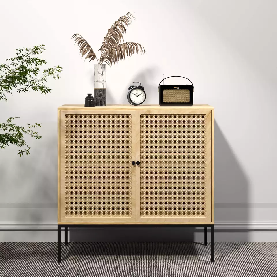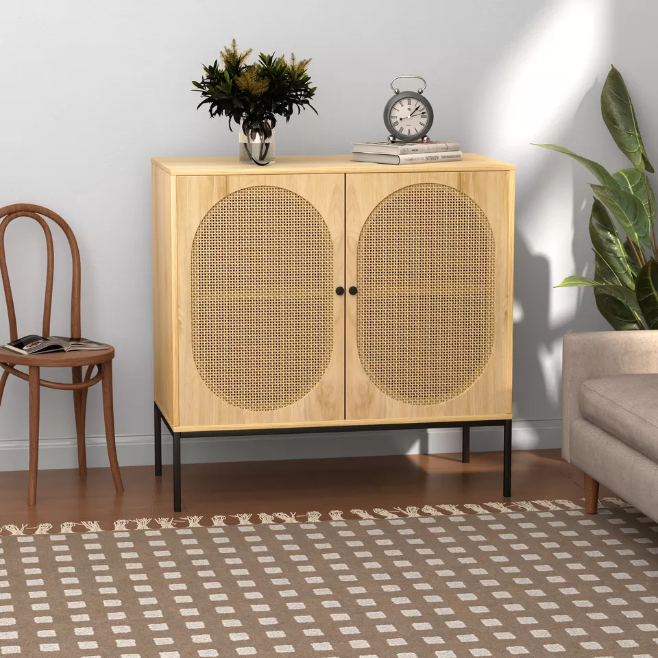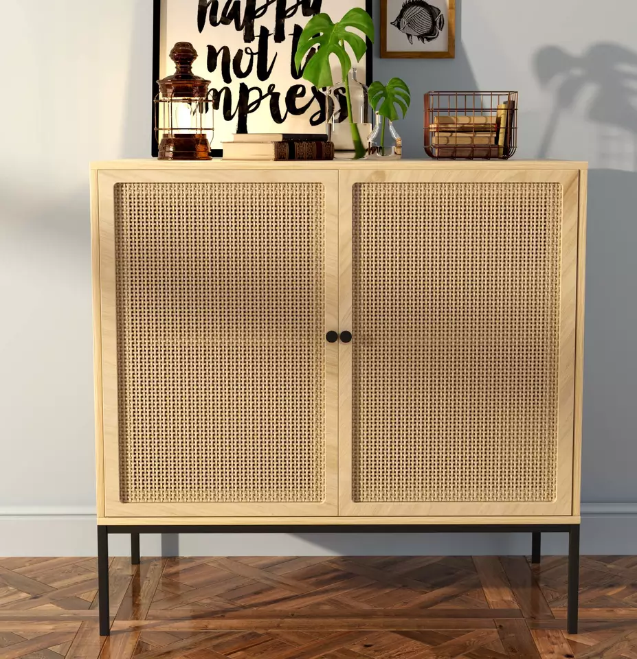 Buffet Modern Sideboard with Handmade Natural Rattan Doors Storage Cabinet