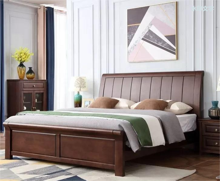 Hot Sale Fashionalbe Practical Walnut Color Solid Wood Home King Size Wood Bed
