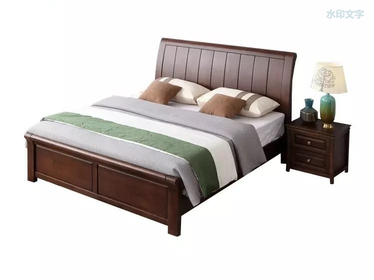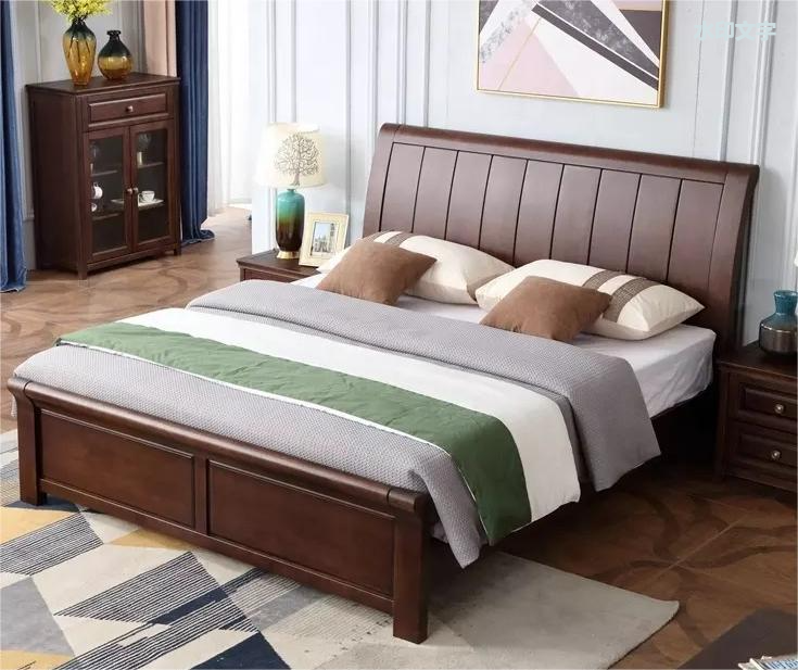 Factory Hot Sale American Style Environment Walnut Color Furniture Indoor Double Solid Wood Bed
