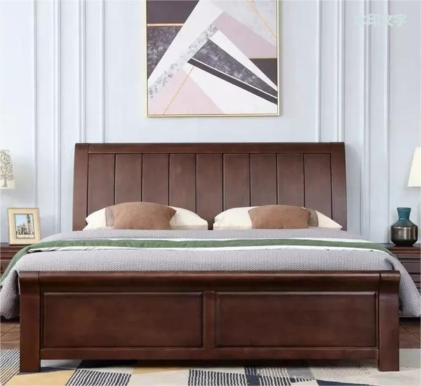 Factory Direct Sale Creative Style Easy Clean Walnut Color Solid Wood Bedroom King Double Bed