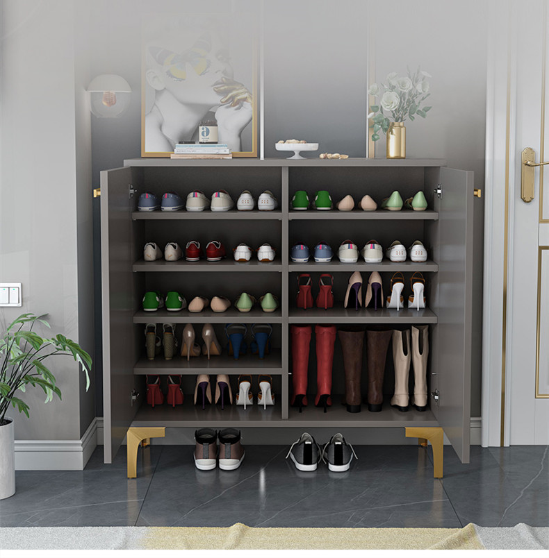 Fashion Rectangle Grey White 2 Door 3 Doors Particle Board Mdf Shoe Storage Cabinet
