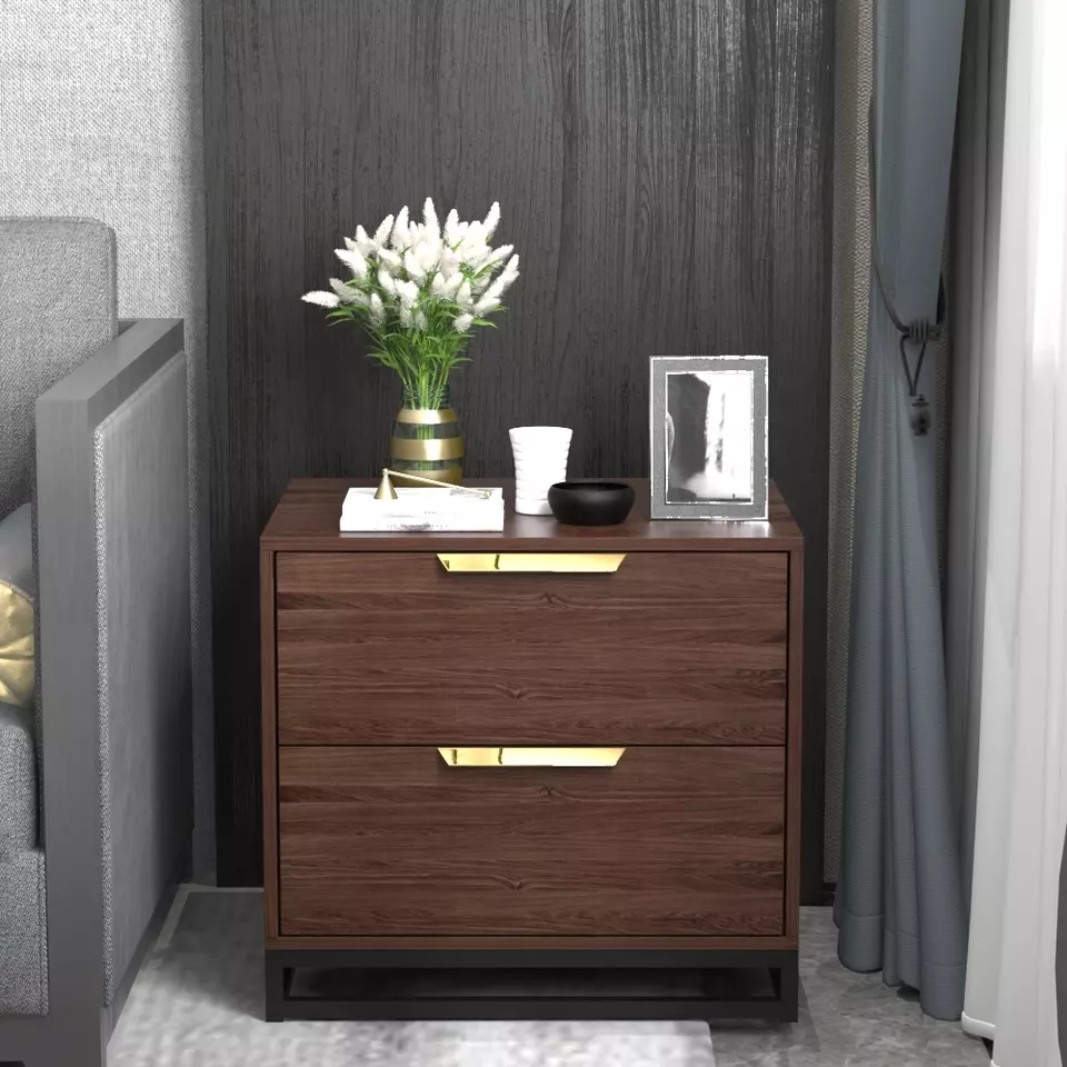 Gold Metal Leg Nordic Light Luxury Bedside Table Wood Nightstands Bed Side Table Bedroom Modern for Bedroom