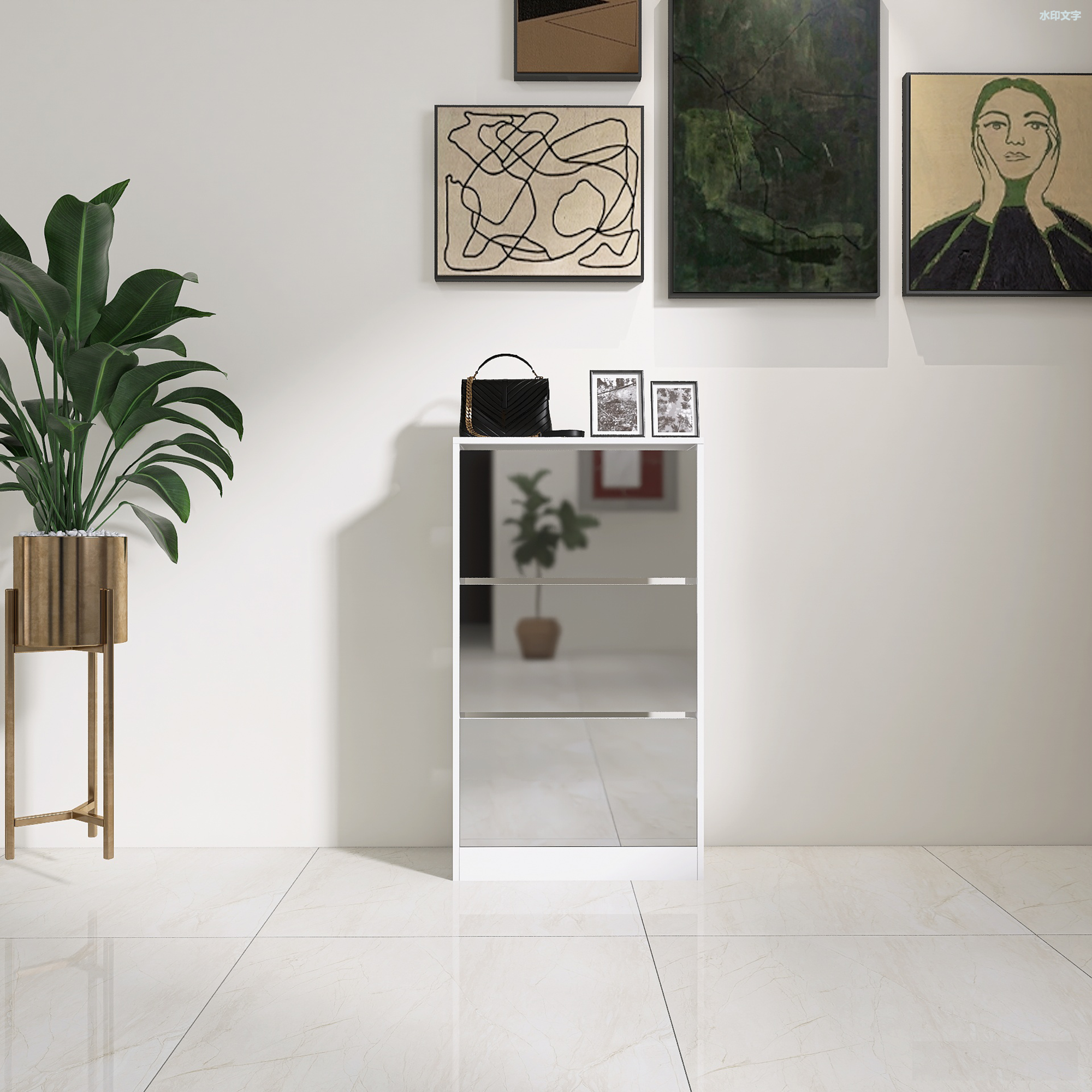 • Description: - Space saving shoe rack - w / 2 Clamshell containers - w/mirror door
