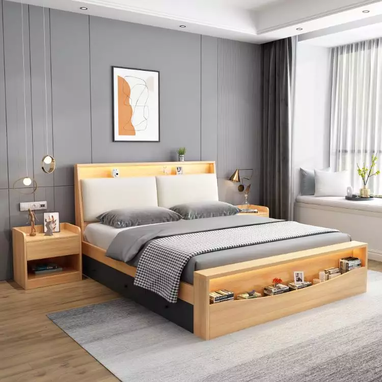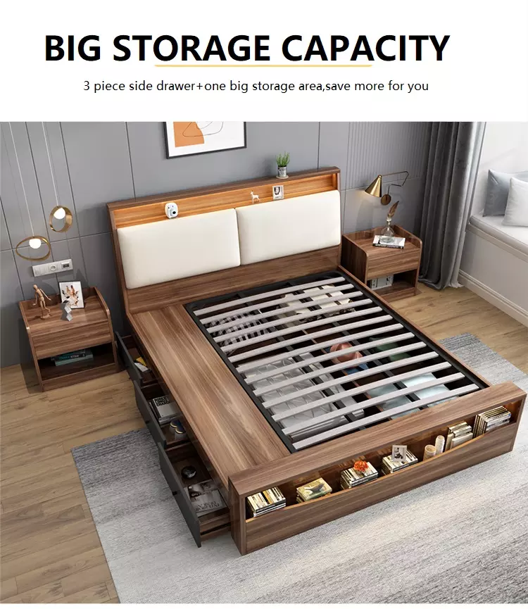 King Queen Size Storage MDF Bed for Home Furniture