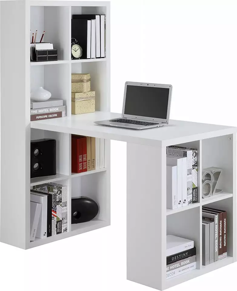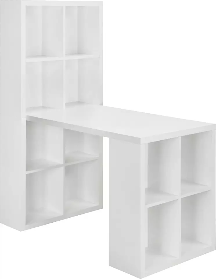 Living Room H Shaped Console Table, 2+1 Desk with A Hutch Bookshelf Cube