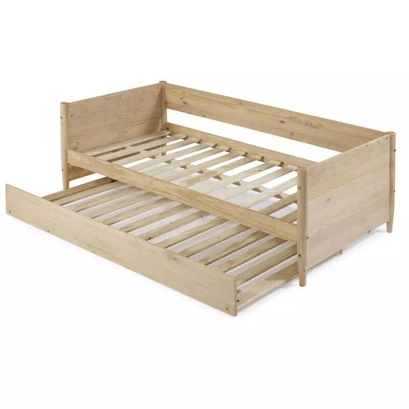 Mid-Century Modern Daybed Panel Headboard Solid Wood Slats Day Bed Twin Trundle Beds