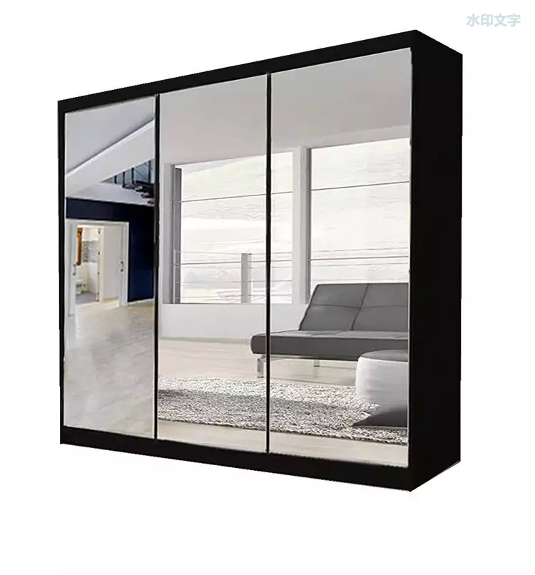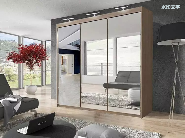 Modern Double Full Mirror sliding door wardrobe with 2 LED Light Width 180cm closet