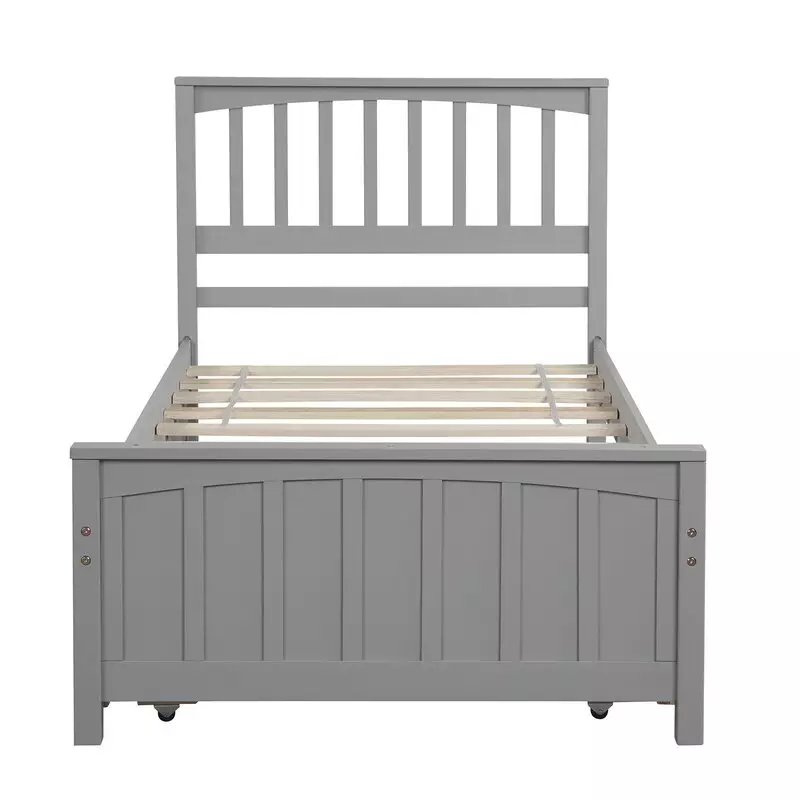 Modern Easy Assemble Flat Panel Urban Trundle Bed Solid Wood Twin Platform Bed