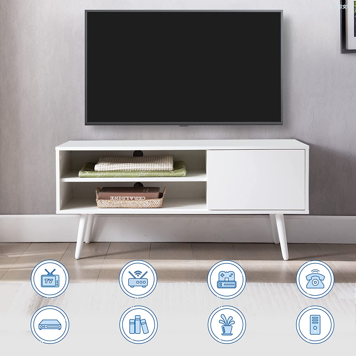 Modern TV cabinet console table with open shelving one door,wooden living room furniture white tv stand with storage About this item