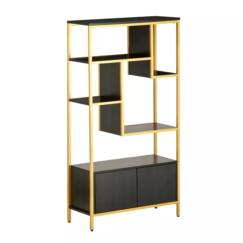 Multi-functional Modern Golden Color Book Rack Shelf with Cabinet & Drawer