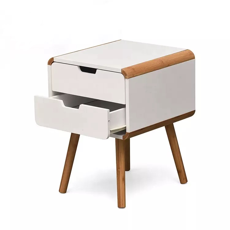 Natural Bamboo Legs Small Mdf Wooden Bedside Table For Living Room