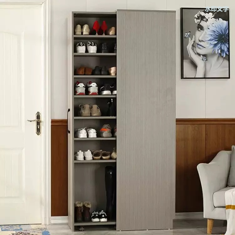 New design nordic space saving wooden foldable Pull out type Side pull shoe rack wall mount with wheels doors