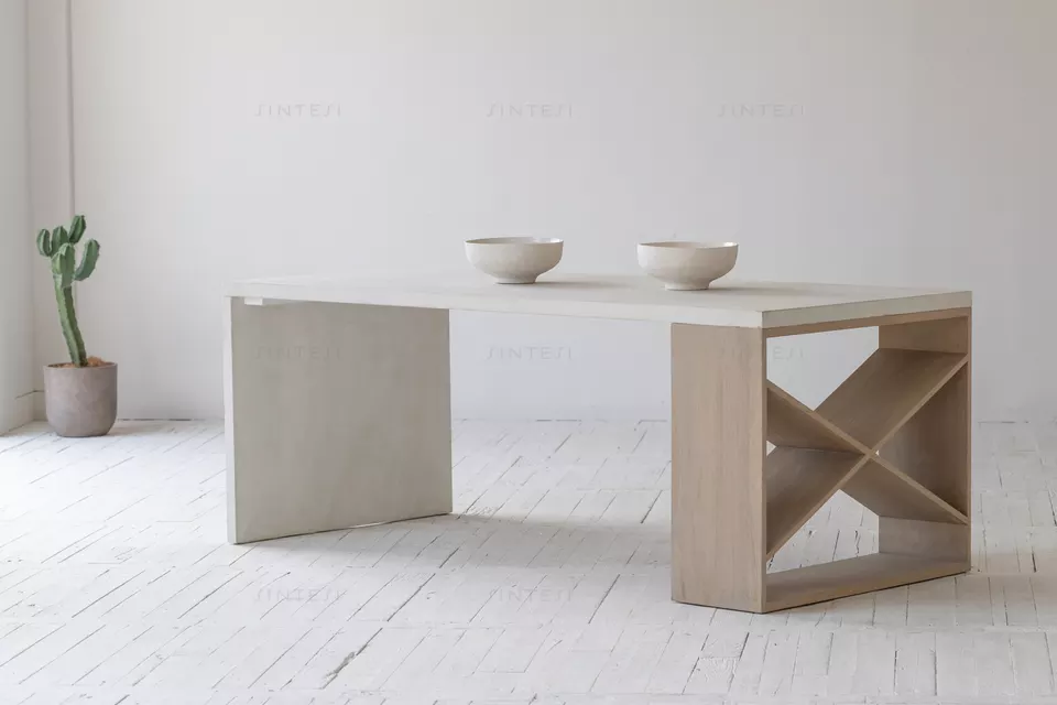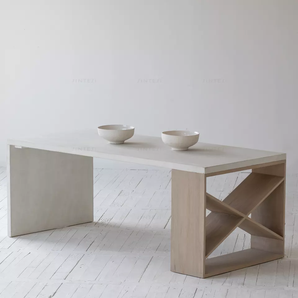 Nordic furniture meuble rectangle middle solid french dining kitchen wood slab table dinner table dining room table