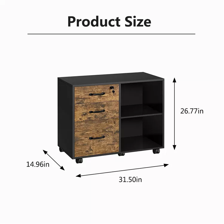 Office Storage 3-Drawer Mobile File Cabinet with Lock Filing Cabinet for Legal