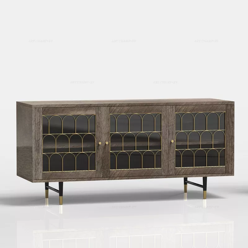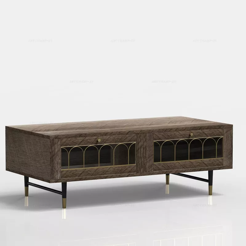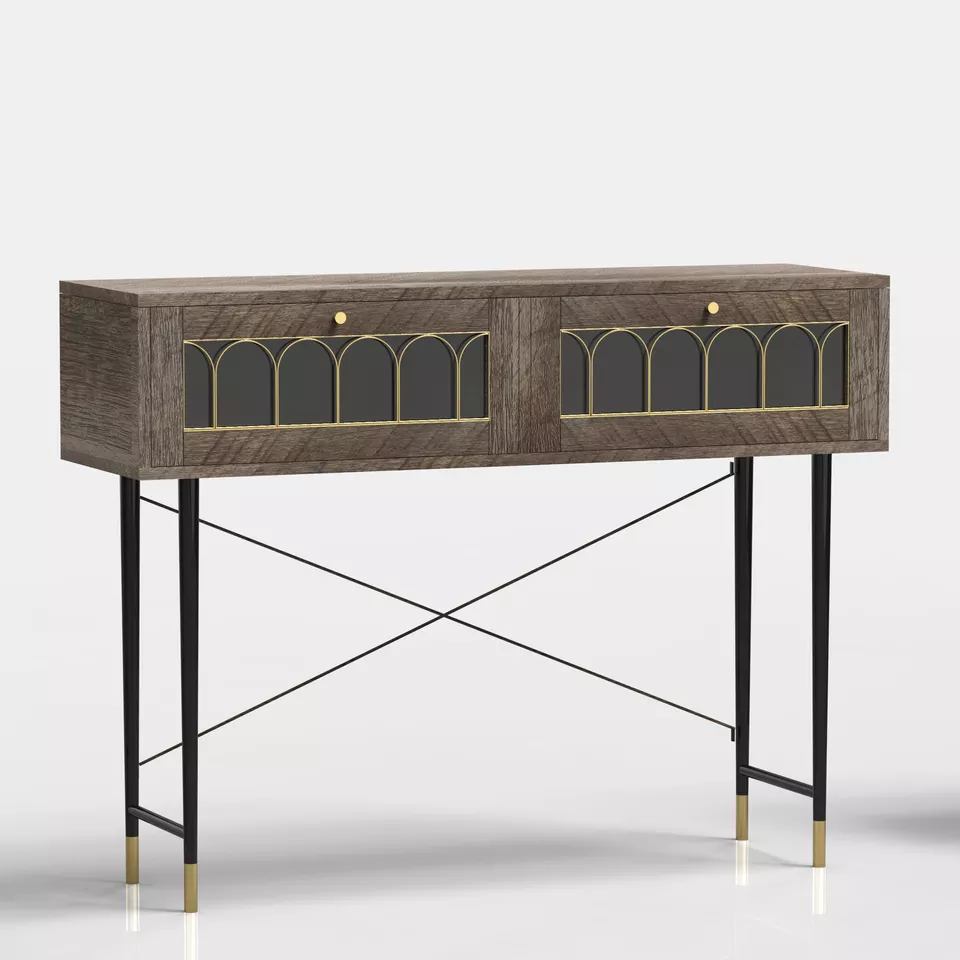 Panel Furniture Home Modern Classic Metal Base Wooden Console Table Set With 2 Drawers