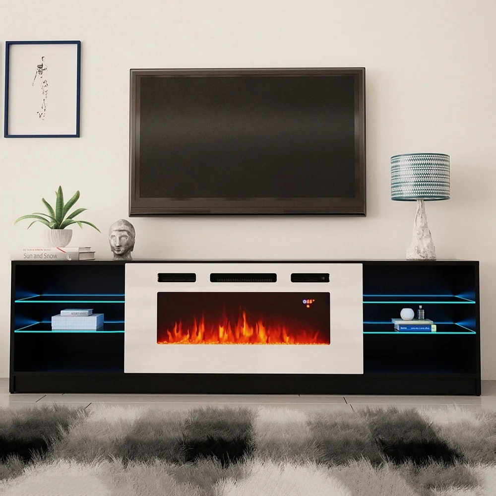 wall wood TV cabinet with Fireplace tv Stand Living Room Storage Cabinet Doors and Shelves in artificial fireplace