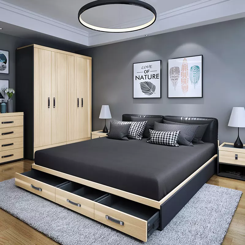 Upholstery Leather Bed With Led Decoration Pu Leather Double Bed Design Furniture