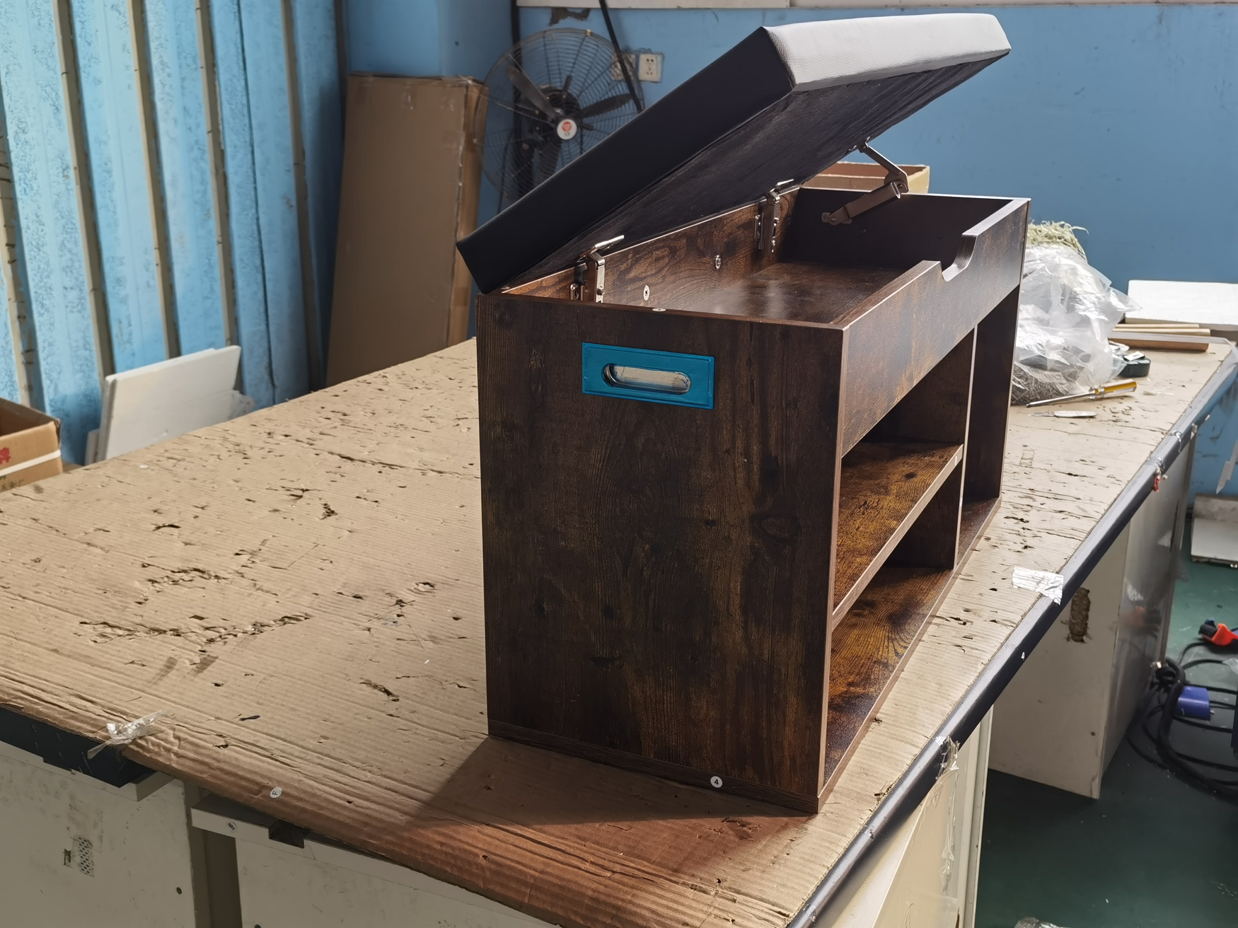 The shoe storage bench with the size of 32.3”L x 12.4”W x 17.3”H takes up very little space, but it can perfectly organize your messy corridor. There are handles on 2 sides of the shoe cabinet, which allows you to lift it easily