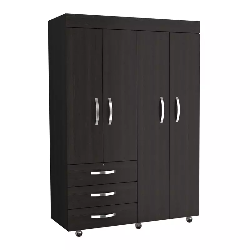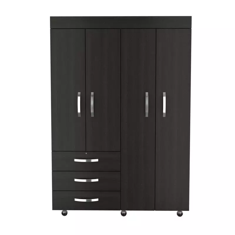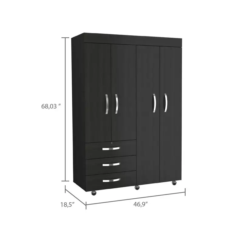Wardrobe Armoire, With 1 Cabinet 1 Hidden Dresser- Black On The Left Side, A Two-door Cabinet with An Interior Hanging Rod