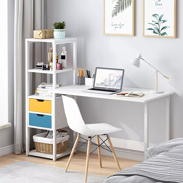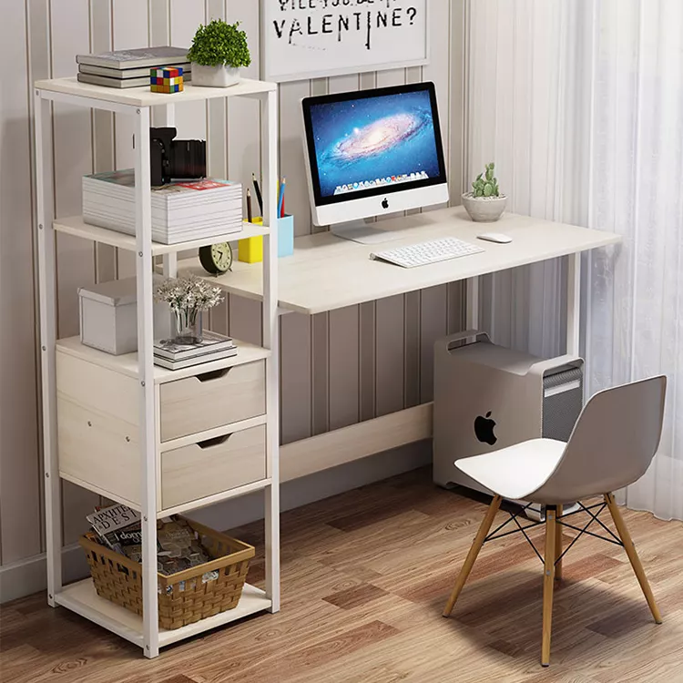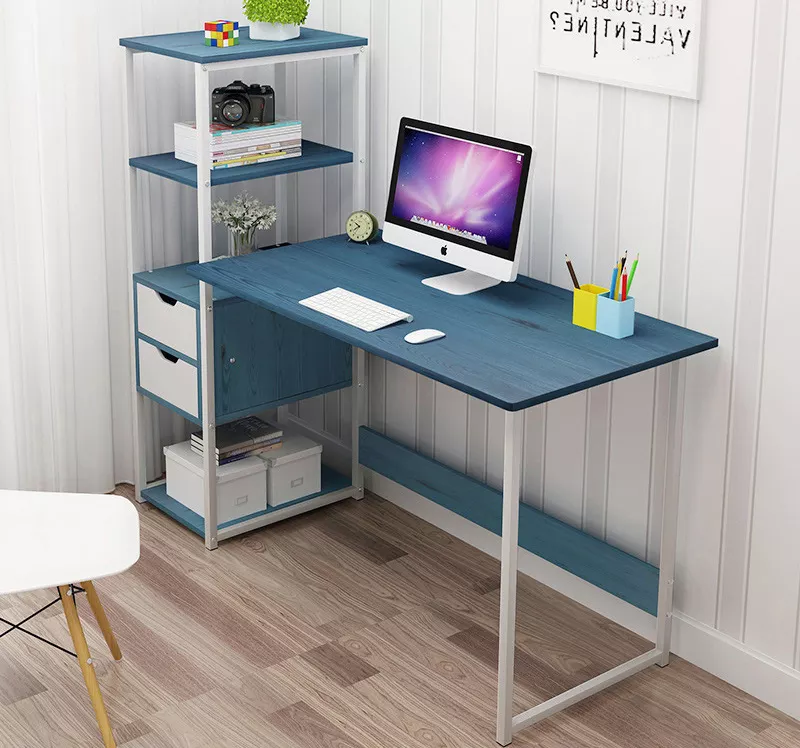Wooden Office Desk Study Writing Home Steel Wood Desktop Computer Table with Shelf And Drawers