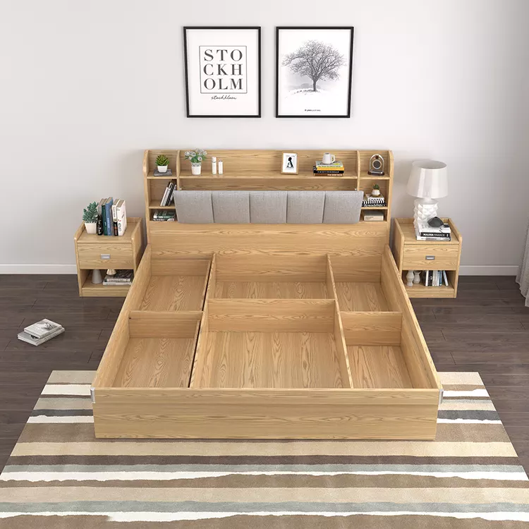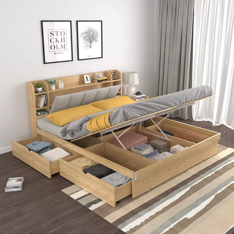 modern queen size wooden frame hydraulic lift storage bed with haeadboard and drawers wooden beds design bedroom furniture sets